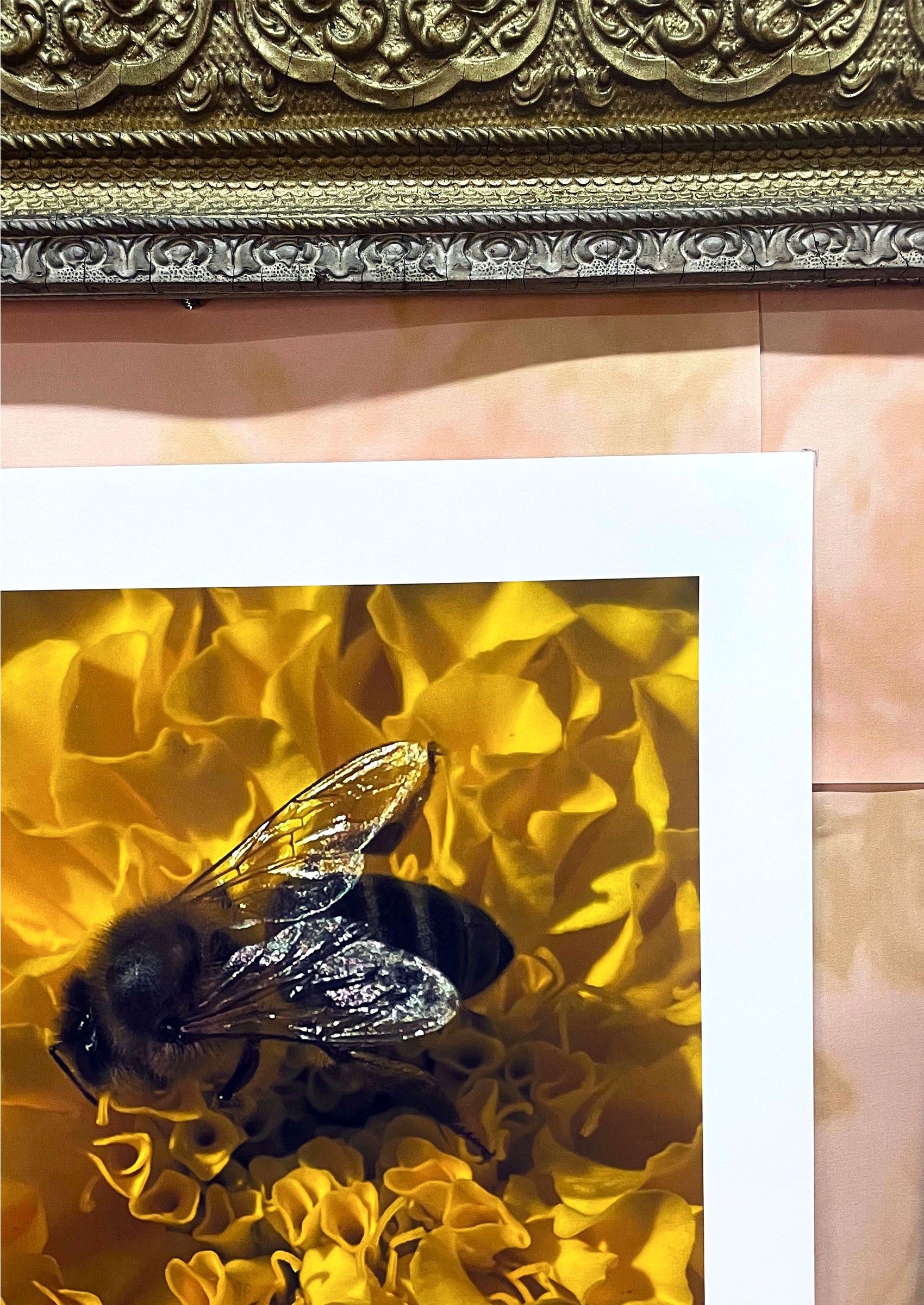 Caught mid-shift this little worker is doing what it does best - turning sunshine into gold. A perfect reminder that beauty isn't lazy, sometimes it buzzes. A electric moment between flower and bee - nature's oldest love affair, rendered in yellow.