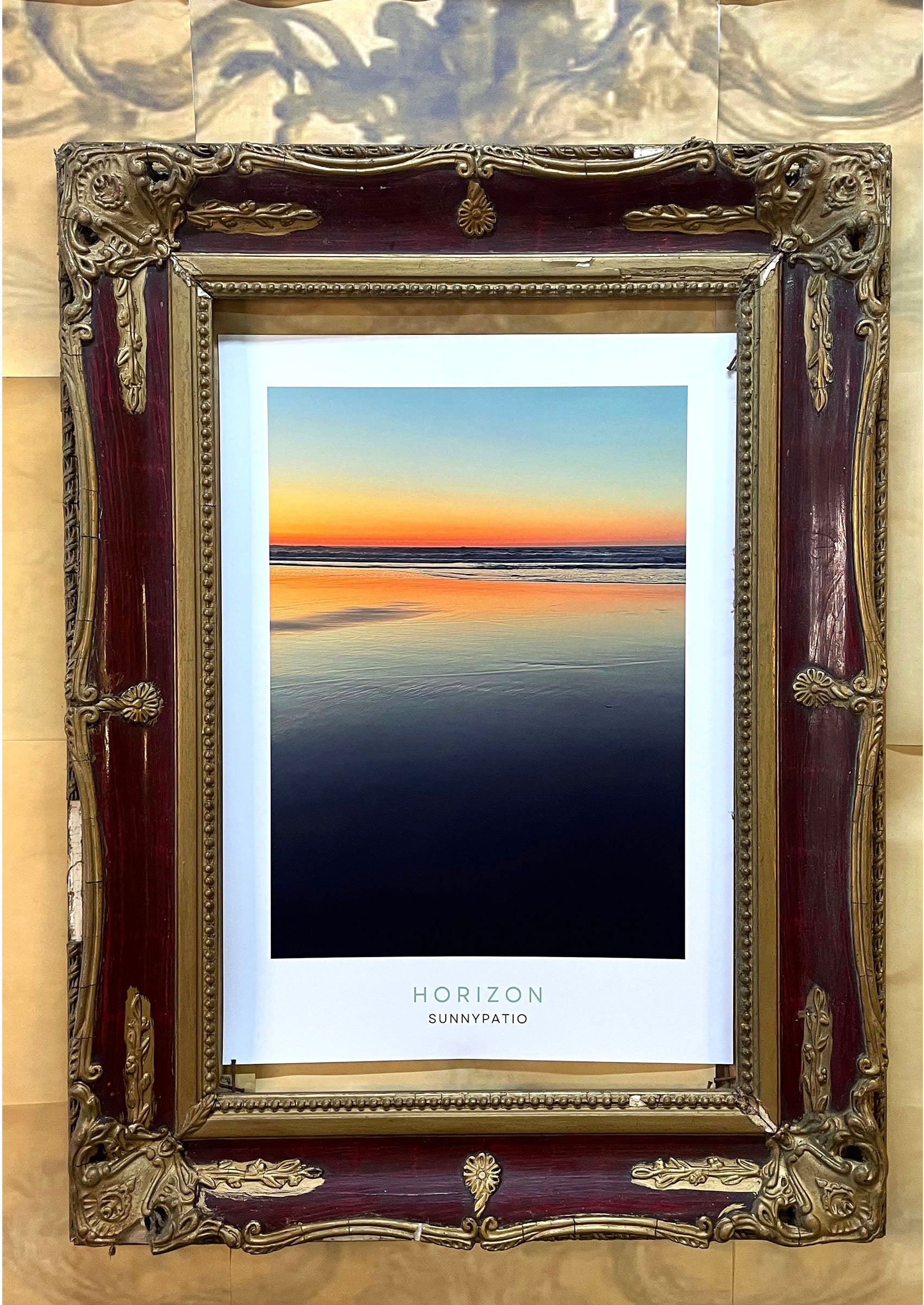 Where the day melts into the sea - a soft silence painted in gold and blue. A serene beauty of a sunset reflected on calm water.