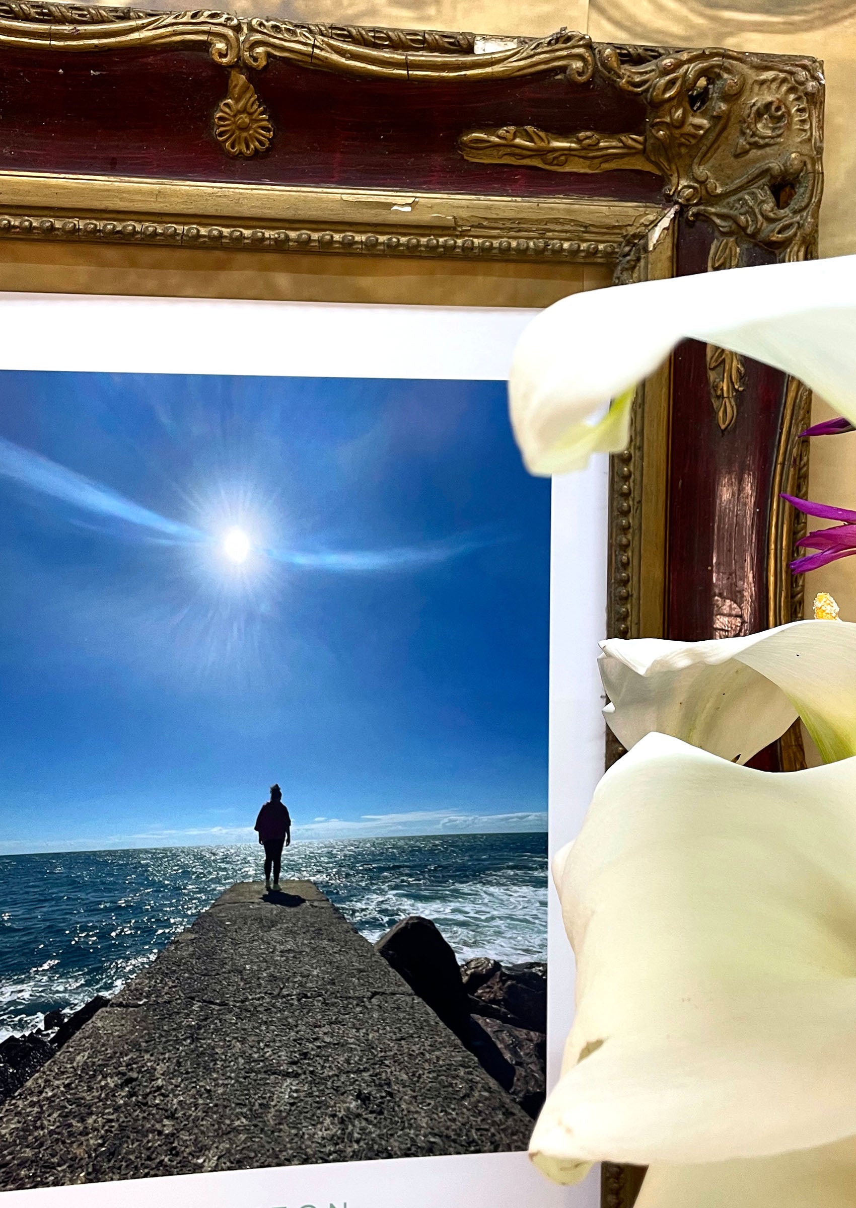 A silhouette steps towards the horizon, wrapped in sunlight and sea breeze - a meeting point between courage and calm, there the sky seems endless.