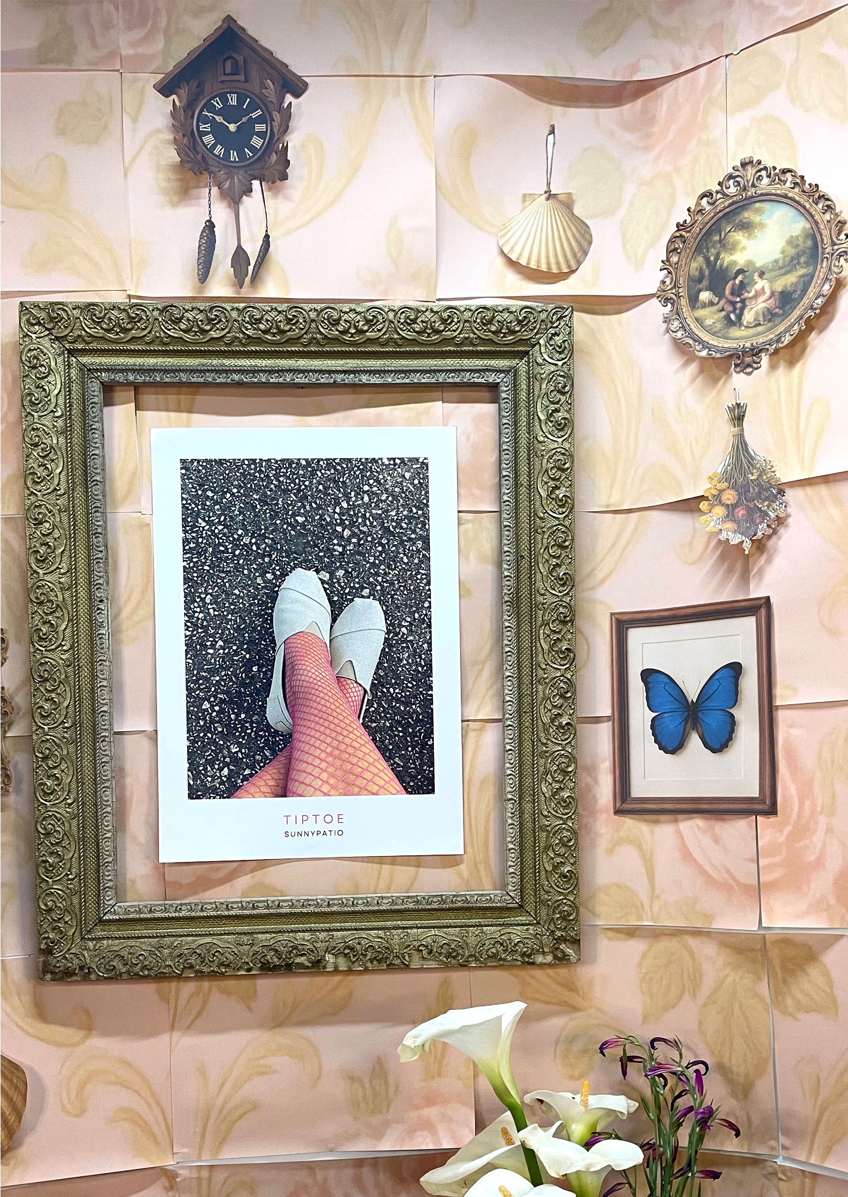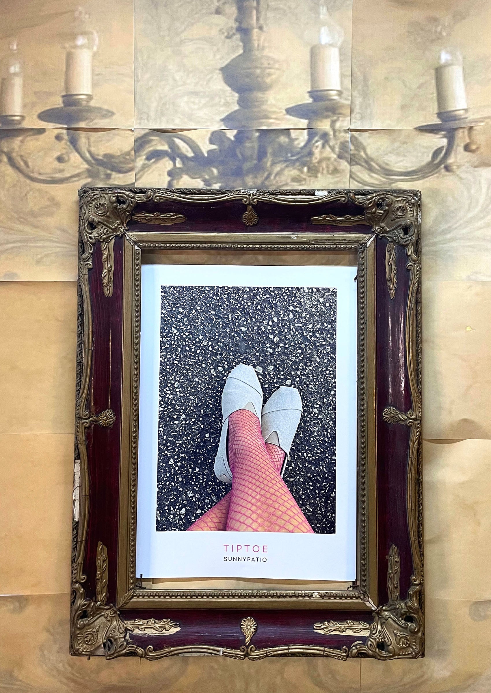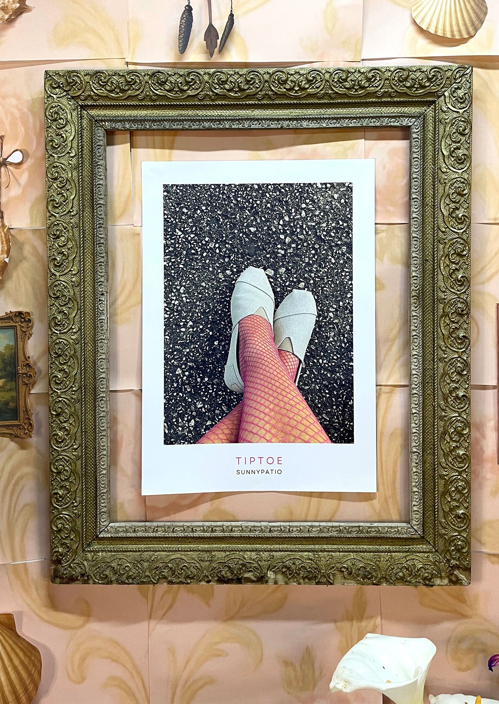 A playful photograph that captures the art of subtle rebellion - pink fishnets, summer shoes and just the right amount of attitude.